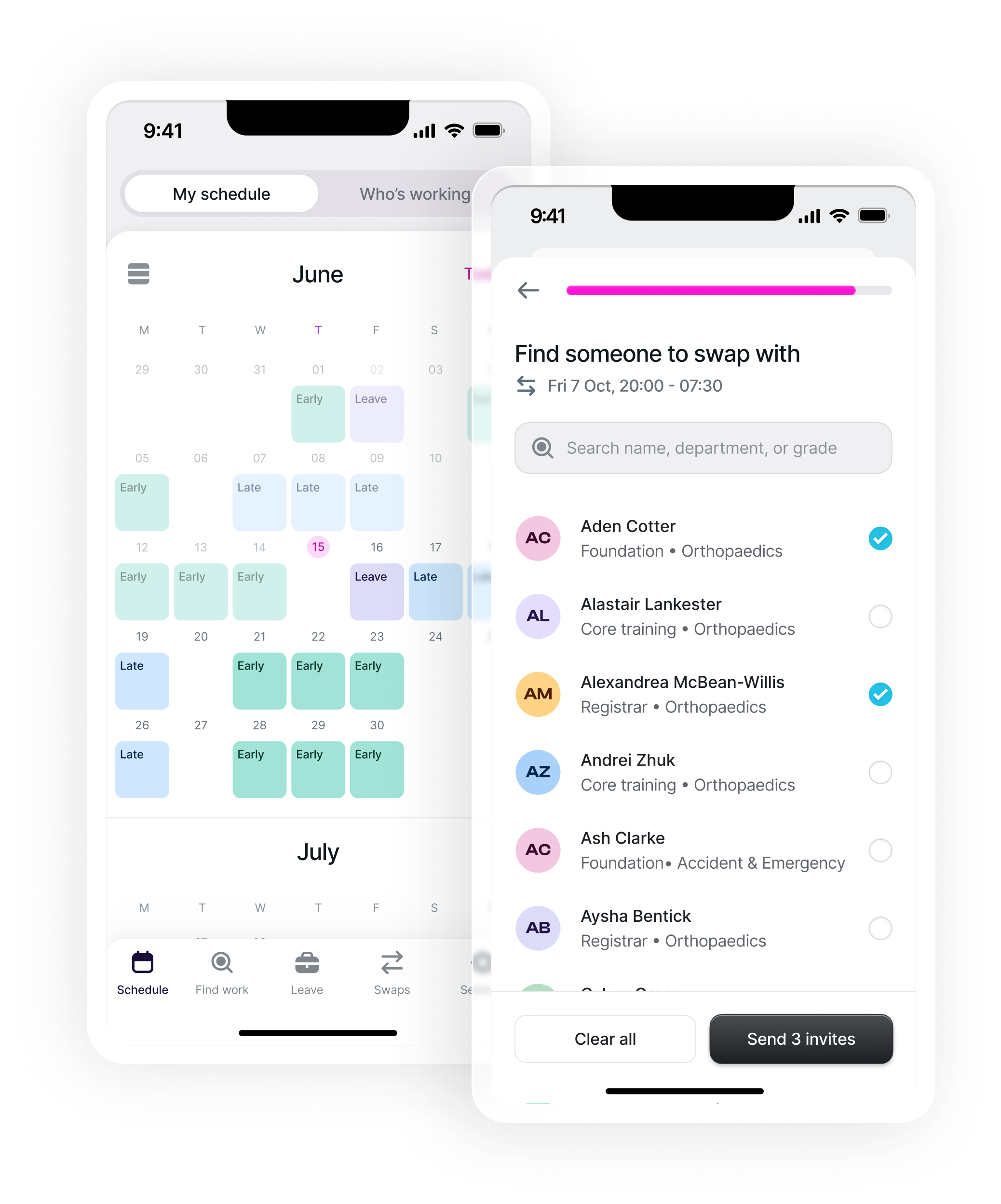 Start every rotation with a rota built around your leave requests and working preferences. Organise shift swaps in just a few taps. And check your real-time rota anytime, anywhere on the app. This is personalised rostering that fits your life.